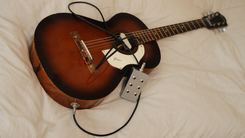 A custom Poly-Pickup Singlecoil, installed on this 1970s Framus guitar. To maintain the instrument’s natural resonance, the pickup is mounted on a frame attached under the neck rather than on the top.